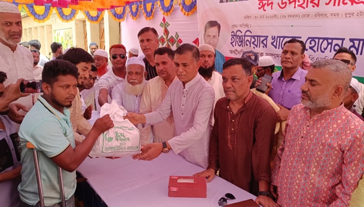 তিনি আরো বলেন, বিএনপির ভারপ্রাপ্ত চেয়ারম্যান তারেক রহমানের নেতৃত্বে অন্তবর্তী সরকারকে সার্বিক সহযোগিতার কারণে দ্রব্যমূল্য থেকে শুরু করে সবকিছু নিয়ন্ত্রণে রয়েছে। তাই মানুষের মধ্যে হাহাকার নেই, তারা শান্তিতে ঈদ করতে পারছে। তিনি এ সময় সাধারণ মানুষকে সাথে নিয়ে জনমানুষের রাজনীতি করতে দলীয় নেতাকর্মীদের আহ্বান জানান। অনুষ্ঠানে মানিক মিয়া সর্দারের সভাপতিত্বে বিশেষ অতিথি ছিলেন সদর উপজেলা বিএনপির সাধারণ সম্পাদক ইঞ্জিনিয়ার আলমগীর হোসেন, জেলা যুবদলের সভাপতি শামীম মোল্লা, সাধারণ সম্পাদক ইয়াসিন মাহমুদ প্রমূখ। পরে ৩ শতাধিক অস্বচ্ছল পরিবারের মাঝে ঈদ উপহার সামগ্রী বিতরণ করা হয়।