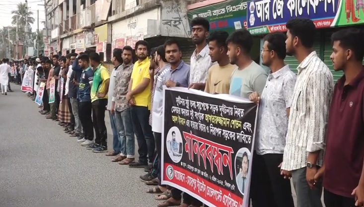 মানববন্ধনে নিহতের পরিবারের পাশাপাশি এসএসসি ২০১২ ব্যাচের শিক্ষার্থী ও সর্বস্তরের জনগণের ব্যানারে মানববন্ধনে অংশগ্রহণ করে শিক্ষার্থী ও বিভিন্ন শ্রেণী পেশার মানুষ।