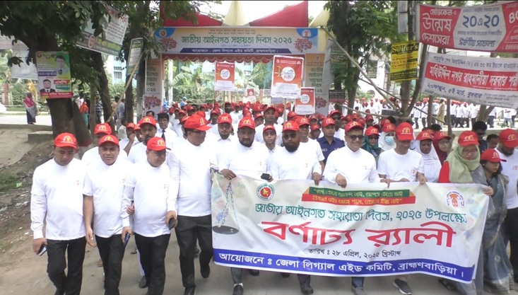 ব্রাহ্মণবাড়িয়ায় বর্ণাঢ্য আয়োজনের মধ্যে দিয়ে জাতীয় আইনগত সহায়তা দিবস পালিত হয়েছে। জেলা লিগ্যাল এইড কমিটির আয়োজনে সোমবার (২৮ এপ্রিল) সকালে জেলা জজ আদালতের সামনে থেকে এ উপলক্ষে একটি র্যালি বের হয়। র্যালীটি শহরের প্রধান সড়ক প্রদক্ষিণ শেষে আদালত ভবনে এসে আলোচনা সভা অনুষ্ঠিত হয়।