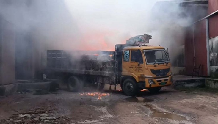 দিনাজপুরের হিলি স্থলবন্দরে ট্রাকে আমদানি করা ভারতীয় ব্লিচিং পাউডার লোড দেওয়ার সময় হঠাৎ অগ্নিকাণ্ডের ঘটনা ঘটেছে। স্থানীয় ও ফায়ার সার্ভিসের চেষ্টায় আগুন নিয়ন্ত্রণে আসে। অগ্নিকাণ্ডে আট লাখ টাকার ক্ষতি হয়েছে বলে দাবি ব্যবসায়ীর।