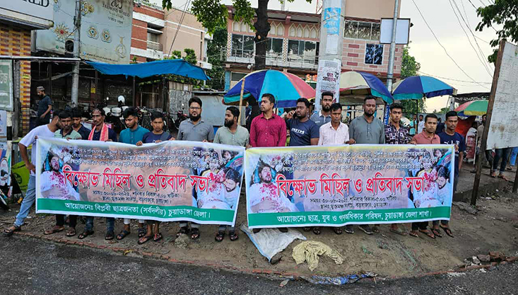 আগামী ৪৮ ঘন্টার মধ্যে জাতীয় পার্টিকে নিষিদ্ধ করতে হবে, উক্ত ঘটনার দায় নিয়ে স্বরাষ্ট্র উপদেষ্টা কে পদত্যাগ করতে হবে এবং উক্ত প্রোগ্রামে ভিপি নুর আই সি ইউতে আছে তার সুস্থতার জন্য চুয়াডাঙ্গা বাসির কাছে দোয়া চেয়েছেন । প্রতিবাদ সভা শেষে এক সংক্ষিপ্ত বিক্ষোভ মিছিল করে উক্ত প্রোগ্রামটি শেষ করা হয়।