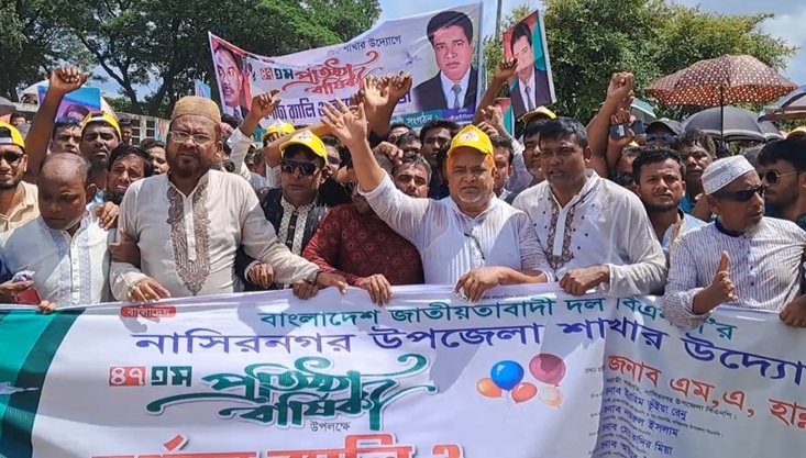 বিএনপির ৪৭তম প্রতিষ্ঠাবার্ষিকী উপলক্ষে ব্রাহ্মণবাড়িয়ার নাসিরনগরে উপজেলা বিএনপি ও অঙ্গ-সহযোগী সংগঠনের আয়োজনে র্যালী ও আলোচনা সভা অনুষ্ঠিত হয়েছে। এ উপলক্ষে বুধবার (৩ সেপ্টেম্বর) দুপুরে নাসিররগর সরকারী কলেজের সামনে থেকে একটি র্যালী বের করা হয়।