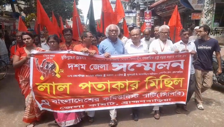 বাংলাদেশের কমিউনিস্ট পার্টি (সিপিবি) ব্রাহ্মণবাড়িয়া জেলা কমিটির দশম জেলা সম্মেলন অনুষ্ঠিত হয়েছে।রবিবার (৭ সেপ্টেম্বর) সকাল ১০টায় শহরের কুমারশীল মোড়ে দি আলাউদ্দিন সঙ্গিতাঙ্গন মিলসায়তনে এ সম্মেলন অনুষ্ঠিত হয়। সম্মেলনে প্রধান অতিথি ছিলেন সিপিবি কেন্দ্রীয় কমিটির সাধারণ সম্পাদক জননেতা কমরেড রুহিন হোসেন প্রিন্স।