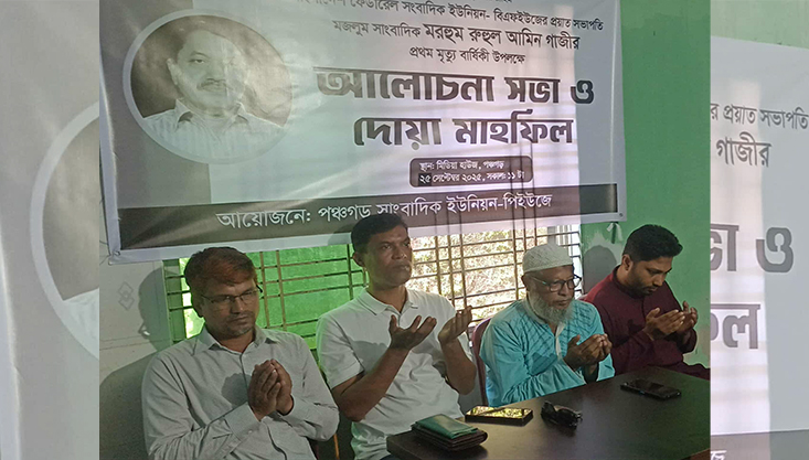 বাংলাদেশ ফেডারেল সাংবাদিক ইউনিয়ন- বিএফইউজের প্রয়াত সভাপতি মরহুম সাংবাদিক রুহুল আমীন গাজীর প্রথম মৃত্যু বার্ষিকী উপলক্ষে পঞ্চগড়ে দোয়া ও আলোচনা সভা অনুষ্ঠিত হয়েছে।