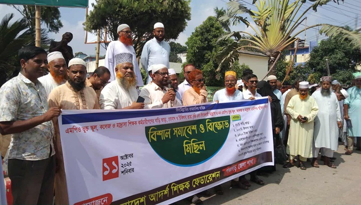 পঞ্চগড় বাংলাবান্ধা মহাসড়ক ধরে বিক্ষোভ মিছিলটি জেলা শহরের চৌরঙ্গী মোড়ে এসে শেষ হয়। পরে সেখানে সমাবেশ অনুষ্ঠিত হয়। এ সময় বক্তব্য দেন বাংলাদেশ আদর্শ শিক্ষক ফেডারেশন পঞ্চগড় জেলা শাখার সভাপতি মাওলানা মোহাম্মদ অলিউল্ল্যাহ, কলেজ শিক্ষক ফেডারেশনের সভাপতি মো. মাসুদ, ইবতেদায়ী ফেডারেশনের সভাপতি মাওলানা মাজেদুর রহমান, সদস্য ও জামায়াতে ইসলামীর পঞ্চগড় পৌর আমীর মাওলানা জয়নাল আবেদীন প্রমূখ।