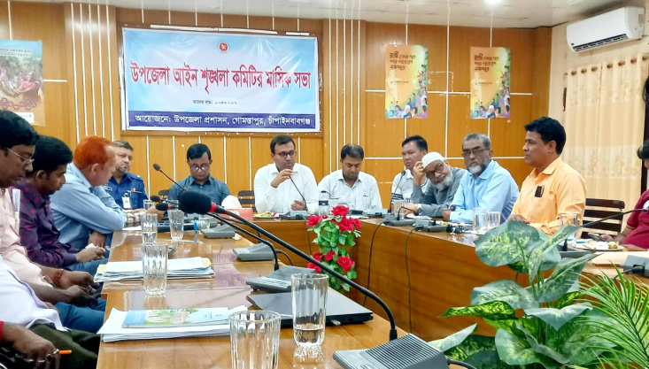 চাঁপাইনবাবগঞ্জের গোমস্তাপুরে আইন শৃঙ্খলা কমিটির মাসিক সভা অনুষ্ঠিত হয়েছে।