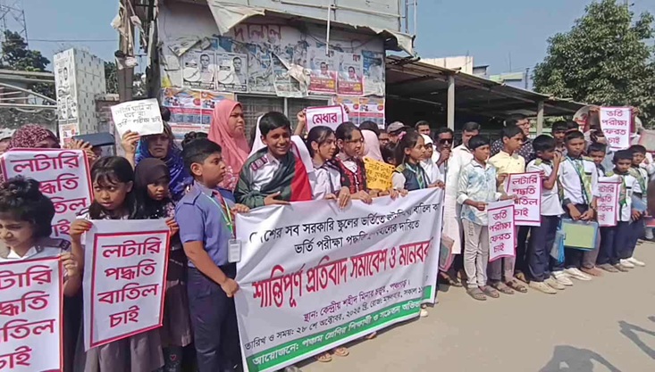 পঞ্চগড়ে সরকারি স্কুলে ভর্তি প্রক্রিয়ায় লটারী প্রথা বাতিলের দাবিতে মানববন্ধন