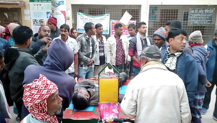 নিহত তুহিন হোসেন ইলেকট্রিক মিস্ত্রি ও করমদি গ্রামের সন্ধানী পাড়ার জামাল হোসেনের ছেলে। আহতরা হলেন নিহতের স্ত্রী তমা খাতুন (২৫) ও দেড় বছরের কণ্যা শিশু তানহা।