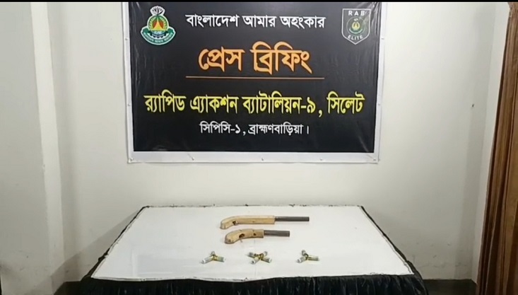 ব্রাহ্মণবাড়িয়া জেলা শহর থেকে দুইটি দেশীয় তৈরি ওয়ান শুটারগান, শটগানের ১০ রাউন্ড কার্তুজ ও পাঁচটি ককটেল উদ্ধার করেছে র্যাব-৯। মঙ্গলবার দিবাগত মধ্যরাতে শহরের শিমরাইলকান্দি এলাকায় অভিযান চালিয়ে র্যাব-৯ এর ব্রাহ্মণবাড়িয়া ক্যাম্পের সদস্যরা এসব উদ্ধার করে। তবে এ ঘটনায় কাউকে আটক করা যায়নি।