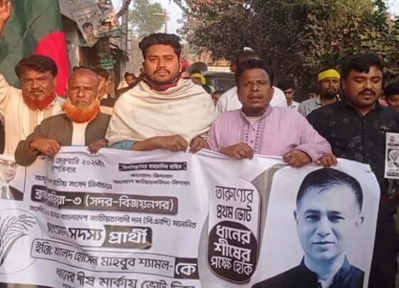 ব্রাহ্মণবাড়িয়া-৩ আসনে ধানের শীষের পক্ষে ঢাক–ঢোল বাজিয়ে গণমিছিল