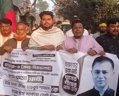 ব্রাহ্মণবাড়িয়া-৩ আসনে ধানের শীষের পক্ষে ঢাক–ঢোল বাজিয়ে গণমিছিল