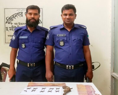মুজিবনগরে যৌথবাহিনীর অভিযানে ওয়ান শুটার গান ও ৩৮ রাউন্ড গুলি উদ্ধার