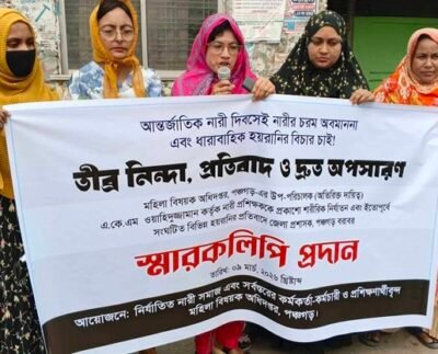 নারী কর্মীকে লাঞ্ছিতের ঘটনায় উপ পরিচালকের অপসারণের দাবিতে মানববন্ধন
